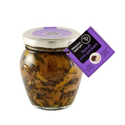 Diese eingelegten geschnittenen Trüffel in Salz und Olivenöl sind ideal für die Zubereitung von warmen Speisen mit Trüffeln wie Fuži, Pijukanci, Gnocchi und Fritaja. Bei der Zubereitung ist zu beachten, dass die Trüffel mit der Flüssigkeit, in der sie aufbewahrt werden, zu den Speisen gereicht werden.