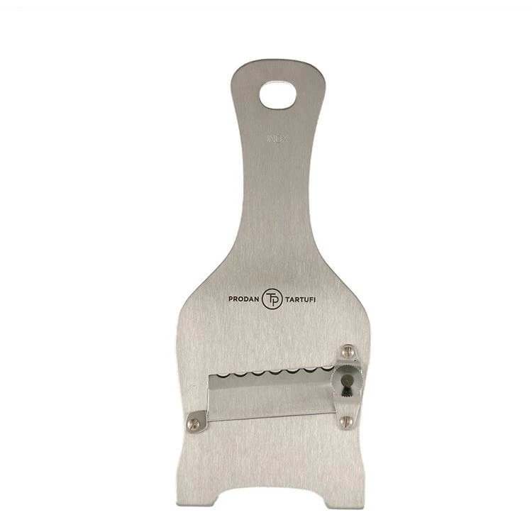 Unser Trüffel Hobeln aus rostfreiem und nahezu unverwüstlichem Edelstahl ist eine hervorragende Ergänzung für jeden Haushalt und ein Muss für jede Gourmetküche. Die extra gehärtete Klinge, welche mittels Vorstellrädchen höhenverstellbar ist, ermöglicht feinste, hauchdünne Trüffel Späne und bei Bedarf auch gröbere Stöße. Ein unverzichtbares Werkzeug sollte man mit Trüffel kochen. Der Trüffel Hobel ist aber längst nicht nur für das Verarbeiten von Trüffeln geeignet. Auch lässt sich hervorragend Gemüse oder Obst so wie Parmesan von hauchdünn bis grob z.B. über Nudeln oder Rinder Carpaccio hobeln. Ein echter Freund und Helfer für die Küche.